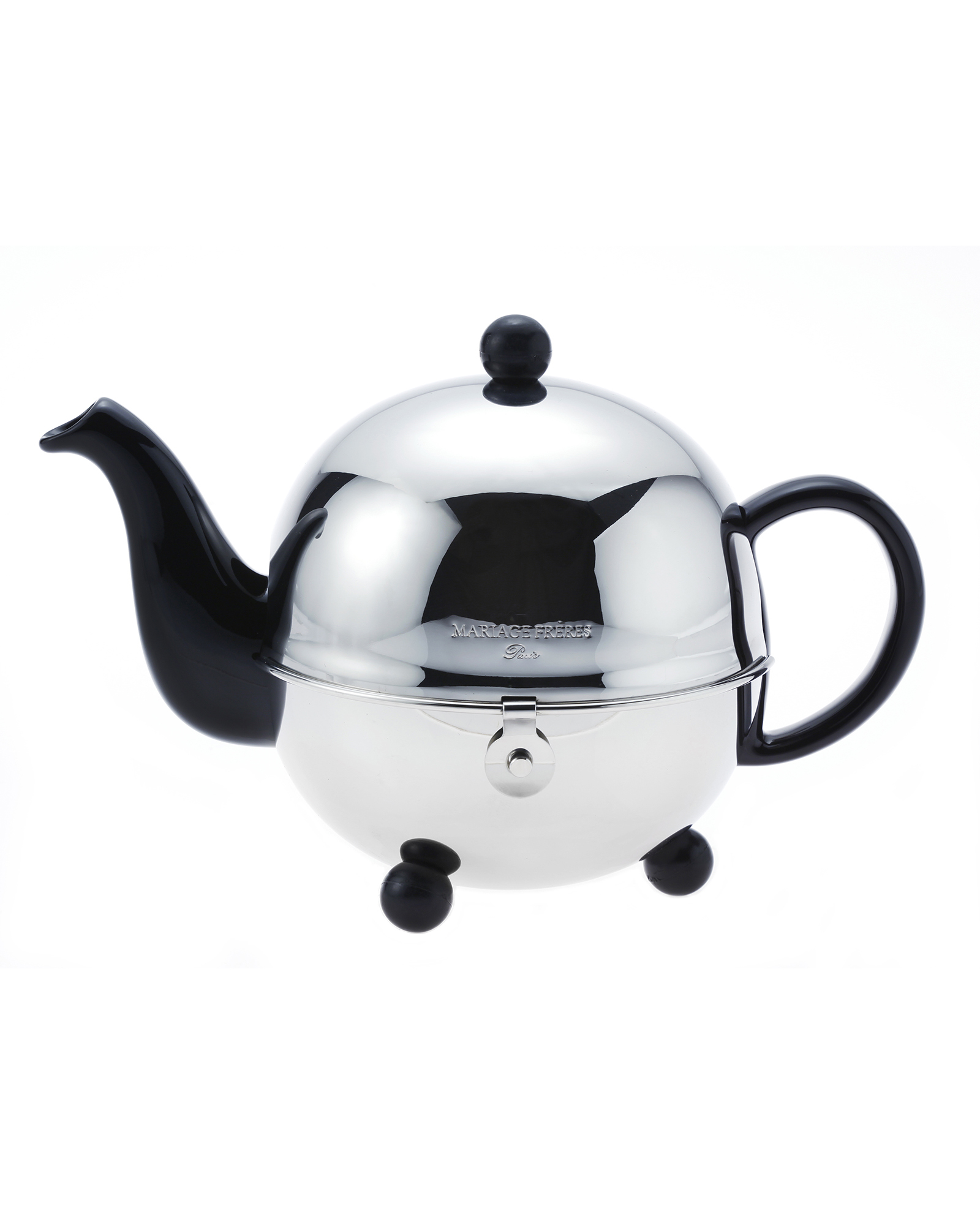 Ισοθερμική μαύρη κεραμική τσαγιέρα. Έμβλημα του Οίκου Mariage Frères: αντικείμενο διακόσμησης και ταυτόχρονα απόλυτα χρηστικό, διαθέτει μια αποσπώμενη σφαίρα από γυαλισμένο ατσάλι που διατηρεί τη θερμοκρασία του τσαγιού για 1 ώρα περίπου. Επίσης διαθέτει ενσωματωμένο φίλτρο.